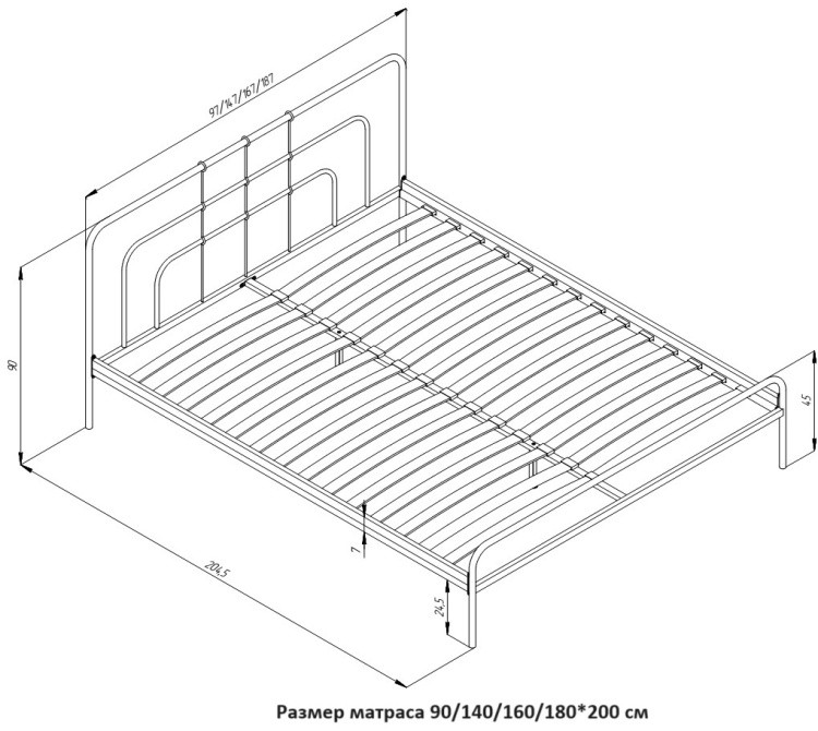 | Вид кровати | Металлическая |