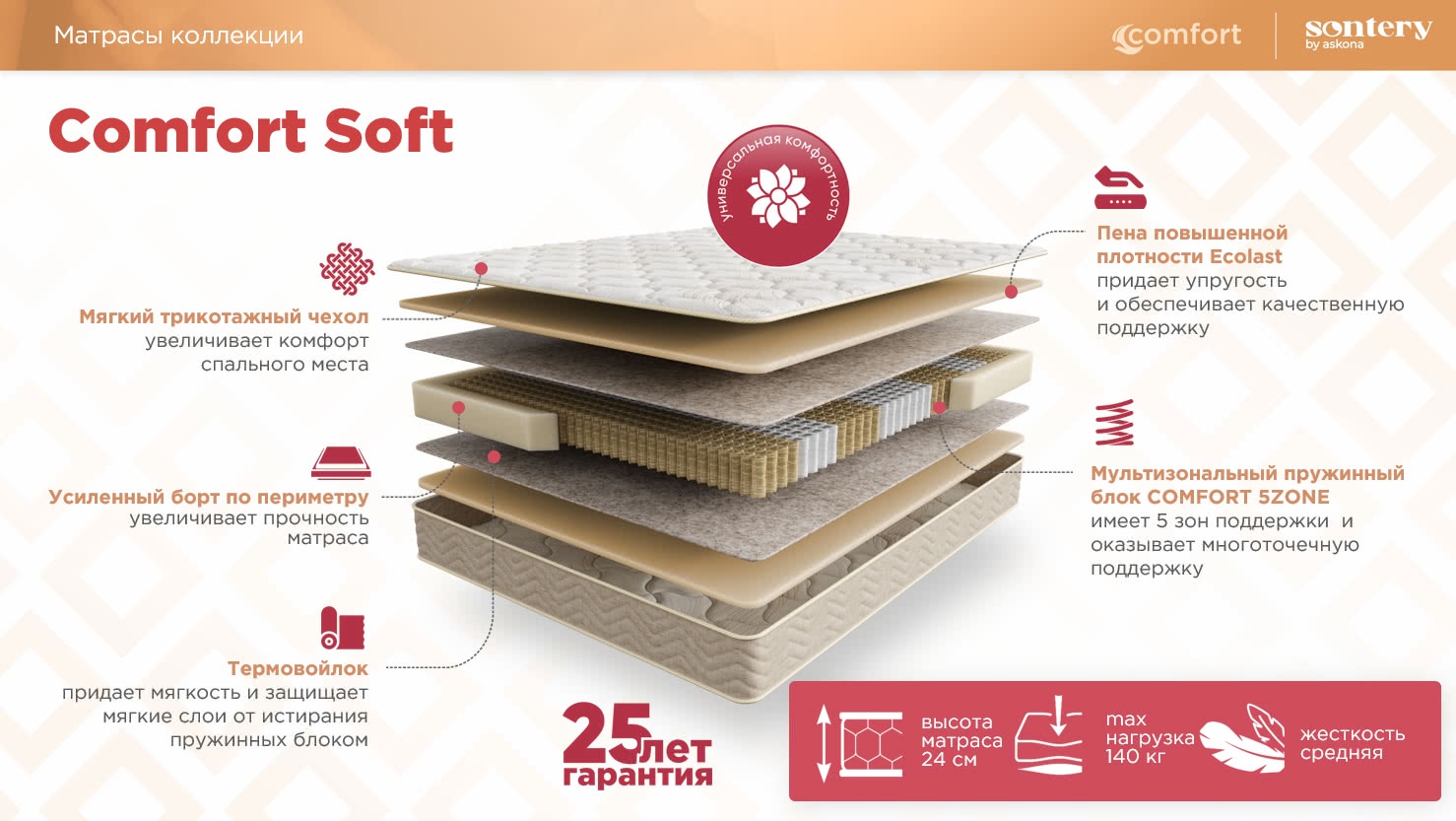 Матрас Askona Sontery Comfort Soft 160×200